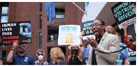 Our advocacy in this space involves everything from legal analysis of U.S. authority to pursue our plan to contracting for expert analyses on the costs of starting up new mRNA vaccine manufacturing plants, from holding a periodic newsmaker webinar series (including, for example, the head of the African CDC) to organizing protests.